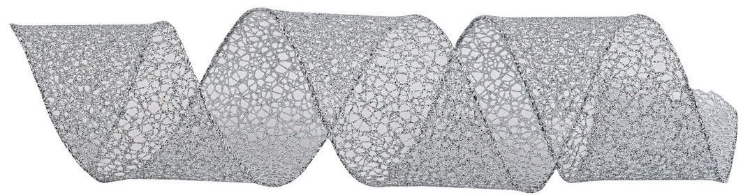 Ασημί Χριστουγεννιάτικη Κορδέλα Με Γκλίτερ 8,5 Μέτρα (9 yards)
