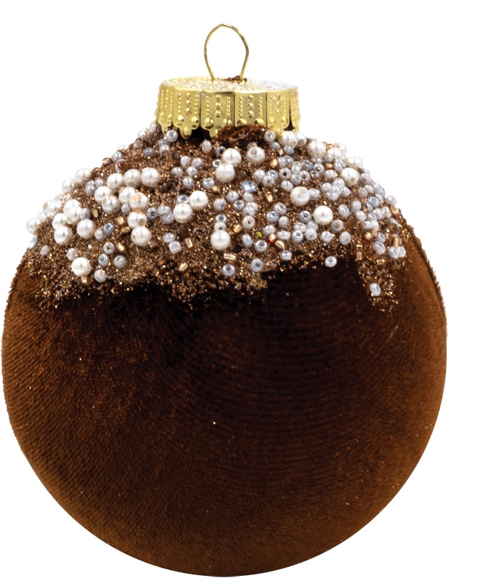 Καφέ Βελουτέ Πλαστική Χριστουγεννιάτικη Μπάλα 12cm,Σέτ/2 Τεμαχίων