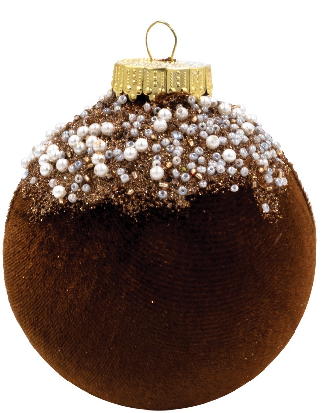 Καφέ Βελουτέ Πλαστική Χριστουγεννιάτικη Μπάλα 10cm,Σέτ/4 Τεμαχίων