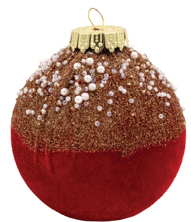 Κόκκινη Βελουτέ Πλαστική Χριστουγεννιάτικη Μπάλα 8cm,Σέτ/6 Τεμαχίων