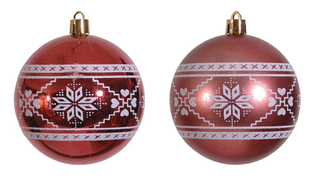 Κόκκινη Πλαστική Γυαλιστερή + Μάτ Χριστουγεννιάτικη Μπάλα 8cm,Σέτ/6 – 2 Χρώματα