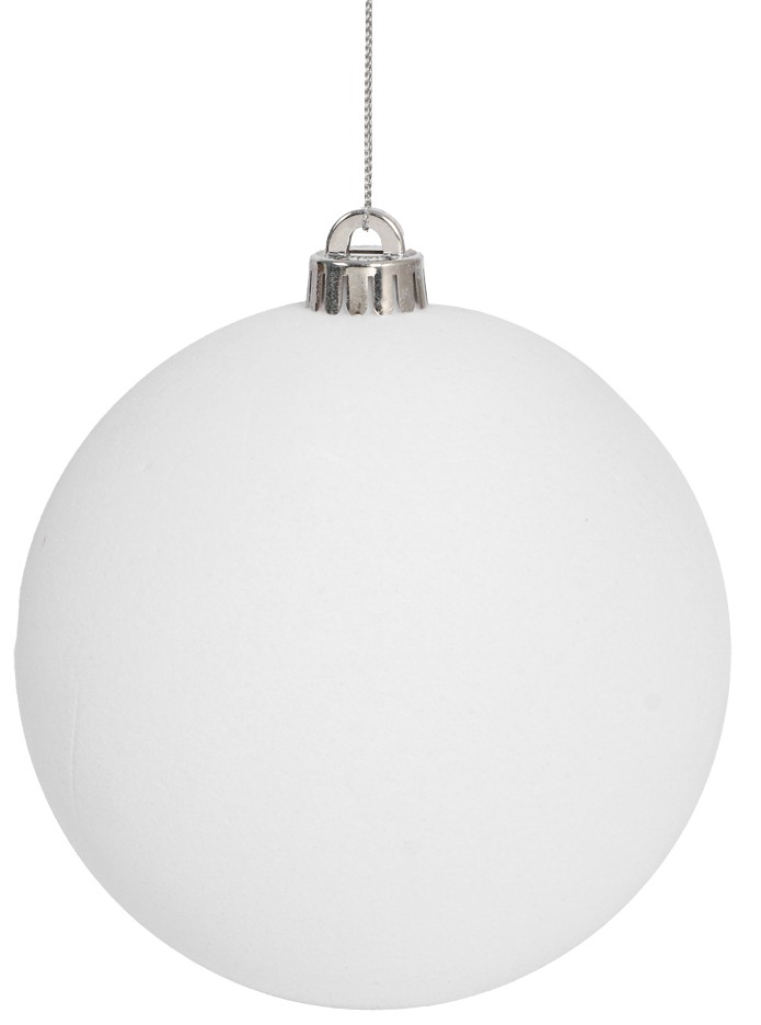 Λευκή Βελουτέ Πλαστική Χριστουγεννιάτικη Μπάλα 10cm,Σέτ/4 Τεμαχίων