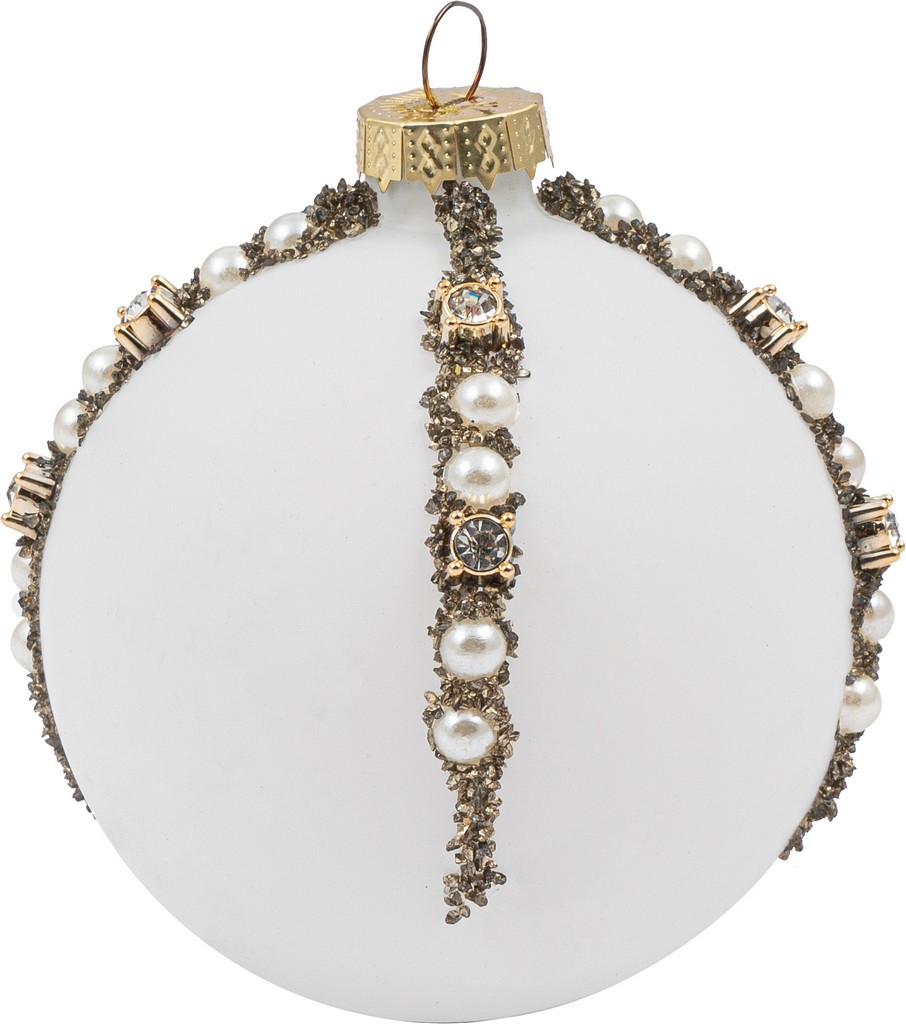 Λευκή Γυάλινη Χριστουγεννιάτικη Μπάλα 10cm ,Σέτ 6 Τεμαχίων