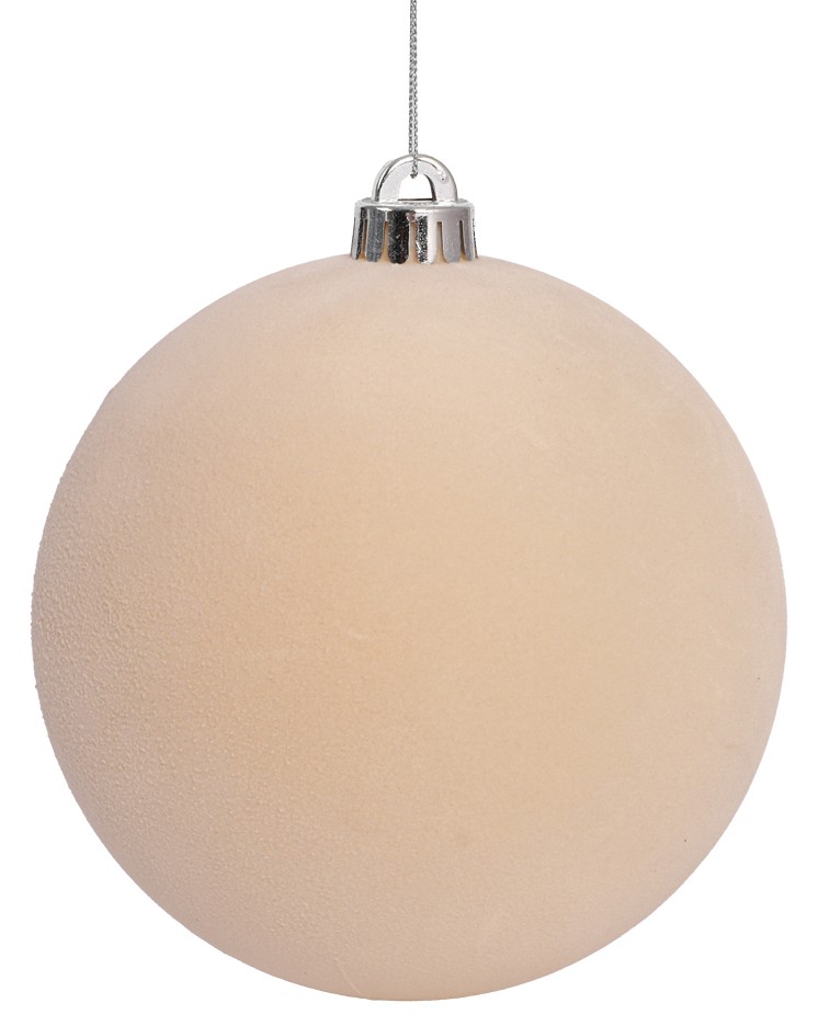 Μπέζ Βελουτέ Πλαστική Χριστουγεννιάτικη Μπάλα 10cm,Σέτ/4 Τεμαχίων
