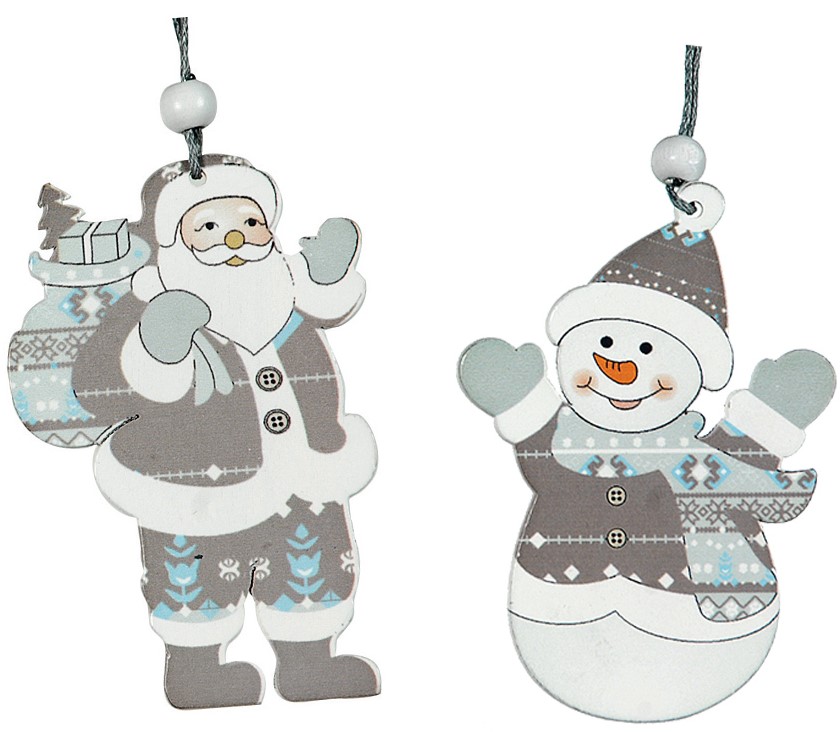Ξύλινα Κρεμαστό Χριστουγεννιάτικο Στολίδια 8cm ,Σετ 4 Τεμαχίων ,(2 Σχέδια)