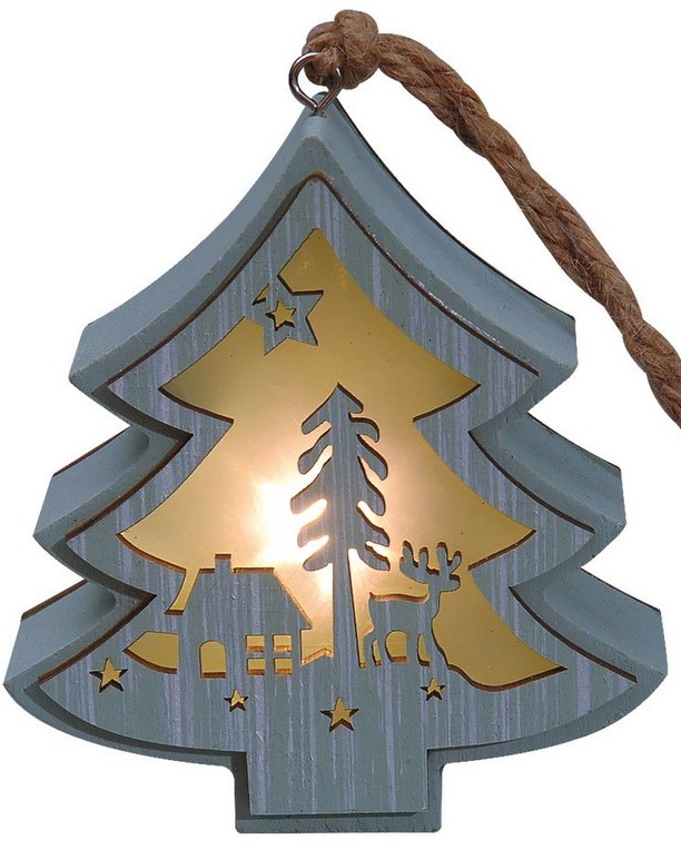 Ξύλινο Διακοσμητικό Δεντράκι Με Led Φωτισμό Μπαταρίας ,12(H) x 12cm