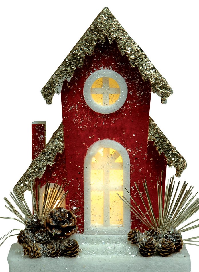 Ξύλινο Διακοσμητικό Σπιτάκι με Led Φωτισμό Μπαταρίας ,23 x 11 x 34cm