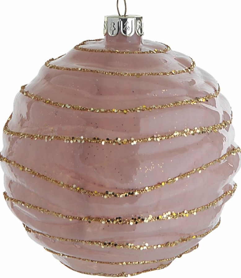 Ρόζ Γυάλινη Χριστουγεννιάτικη Μπάλα 10cm,Σέτ/4