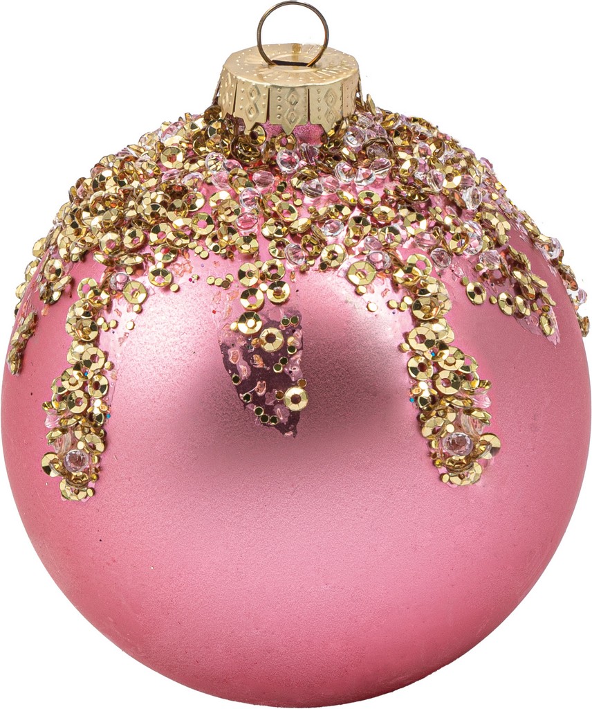 Ρόζ Γυάλινη Χριστουγεννιάτικη Μπάλα 8cm ,Σέτ/6