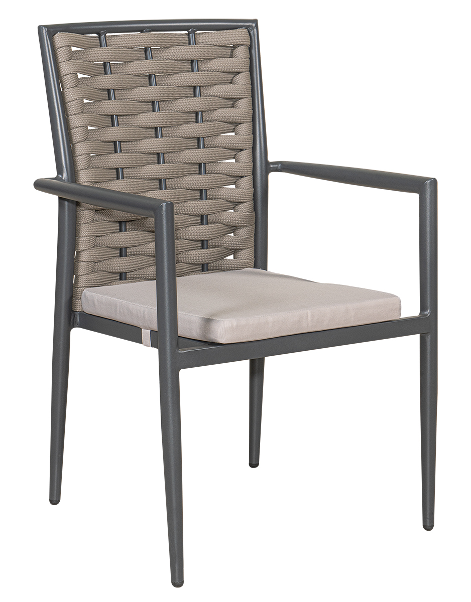 Χαρακτηριστικά: Διαστάσεις: 56(w) x 56(d) x 89(h)cm Στοιβαζόμενη: Ναί Σκελετός: Αλουμινίου Υλικό: Σχοινί Απο Καουτσούκ 5cm