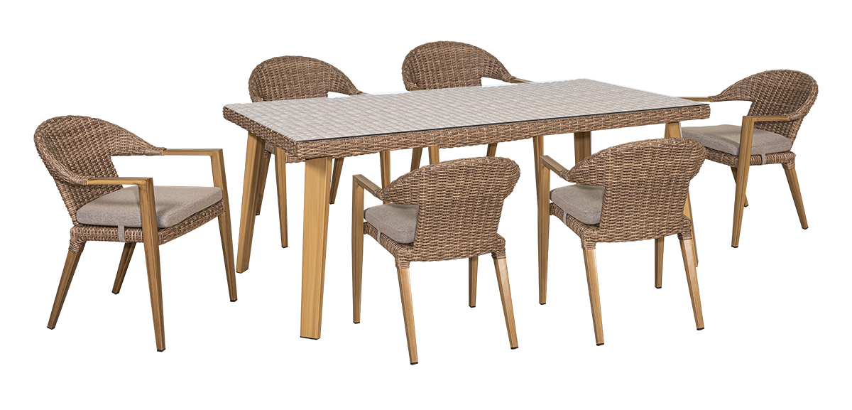 Τραπεζαρία Rattan Σέτ 7 Τεμαχίων ,Με Αλουμίνιο Σκελετό 195 x 95 x 76(h)cm