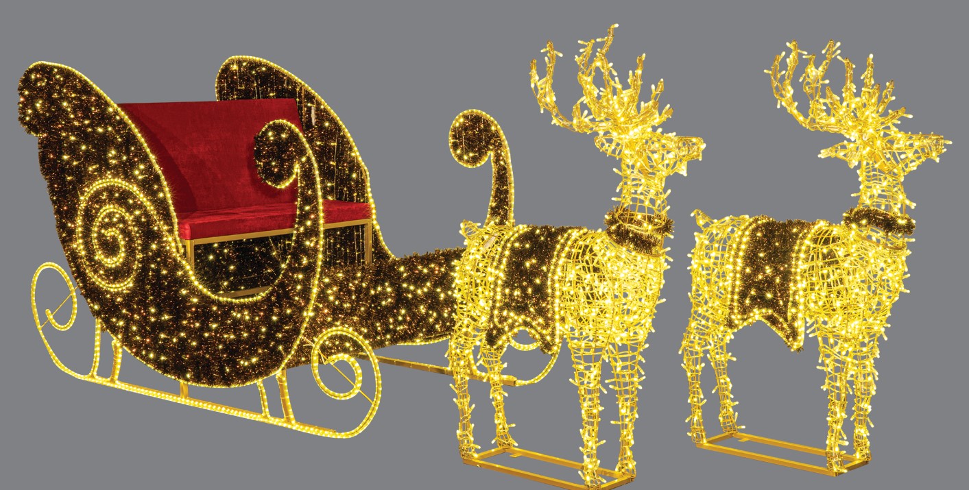 Φωτιζόμενη Παράσταση Έλκηθρο, Με Μεταλλικό Σκελετό ,Γιρλάντες ,Υφασμάτινα Καθίσματα Και Μετασχηματιστή ip65 Εξωτερικού Χώρου 450 x 120 x 150(h)cm