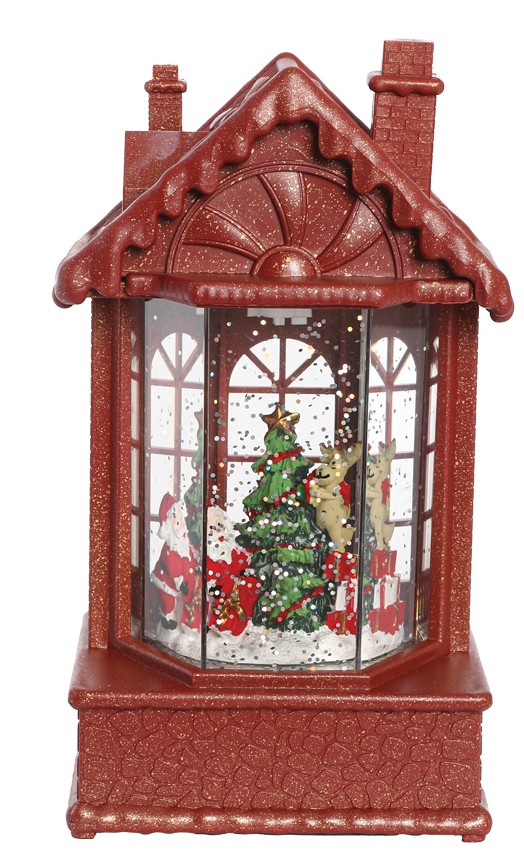 Χριστουγεννιάτικο Διακοσμητικό Σπίτι Χιονόμπαλα Με Φώς Και Μουσική Μπαταρίας Και Καλώδιο Usb 10,5 x 8,7 x 20cm