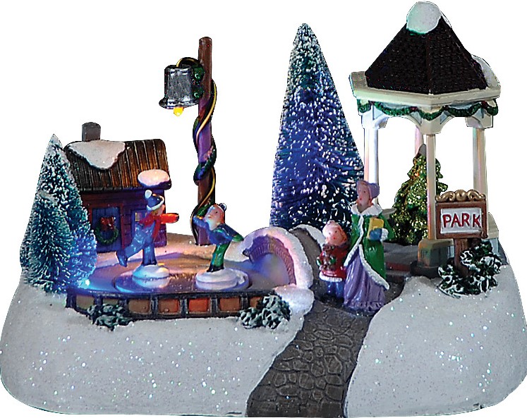 Χριστουγεννιάτικο Διακοσμητικό Όπτικαλ Χωριό Με Κίνηση Μπαταρίας,18 x 13 x 13(Η)cm