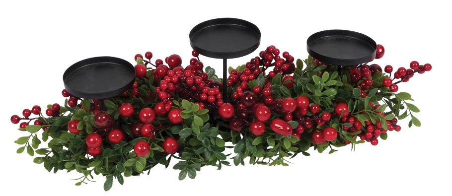 Χριστουγεννιάτικο Κηροπήγιο Με Κόκκινα Berries 60cm