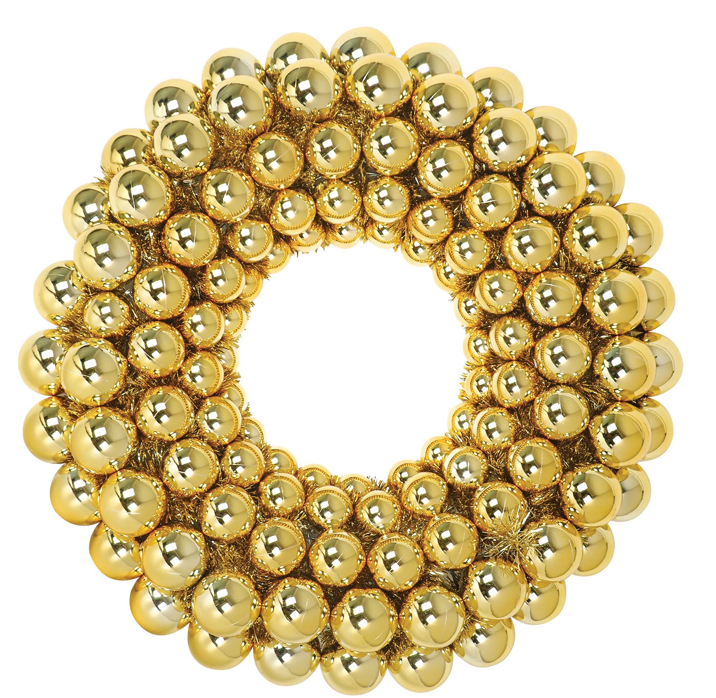 Χρυσό Χριστουγεννιάτικο Διακοσμητικό Στεφάνι Με Χρυσές Μπάλες Και Τρέσα 75cm