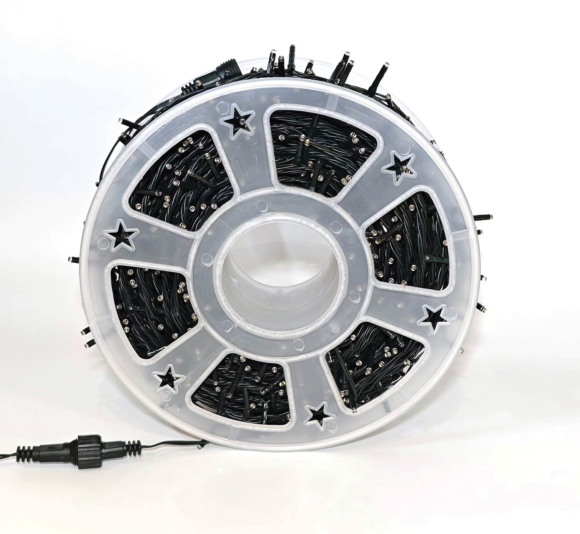 1000Led Λαμπάκια Με Επέκταση Και Μετασχηματιστή Ip44 ,Πράσινο Καλώδιο/Λευκό Λαμπάκι , (5cm Απόσταση) 50 Μέτρα , (Kelvin: 6.000 – 10.000) , Με Καρούλι Αποθήκευσης