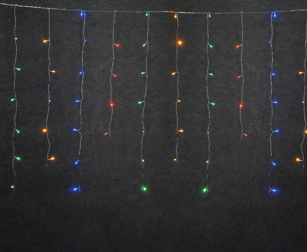 100Led Ασύμμετρη Κουρτίνα Με Επέκταση Και Μετασχηματιστή ip44 200 x 70(h)cm,Διάφανο Καλώδιο/Πολύχρωμο Λαμπάκι