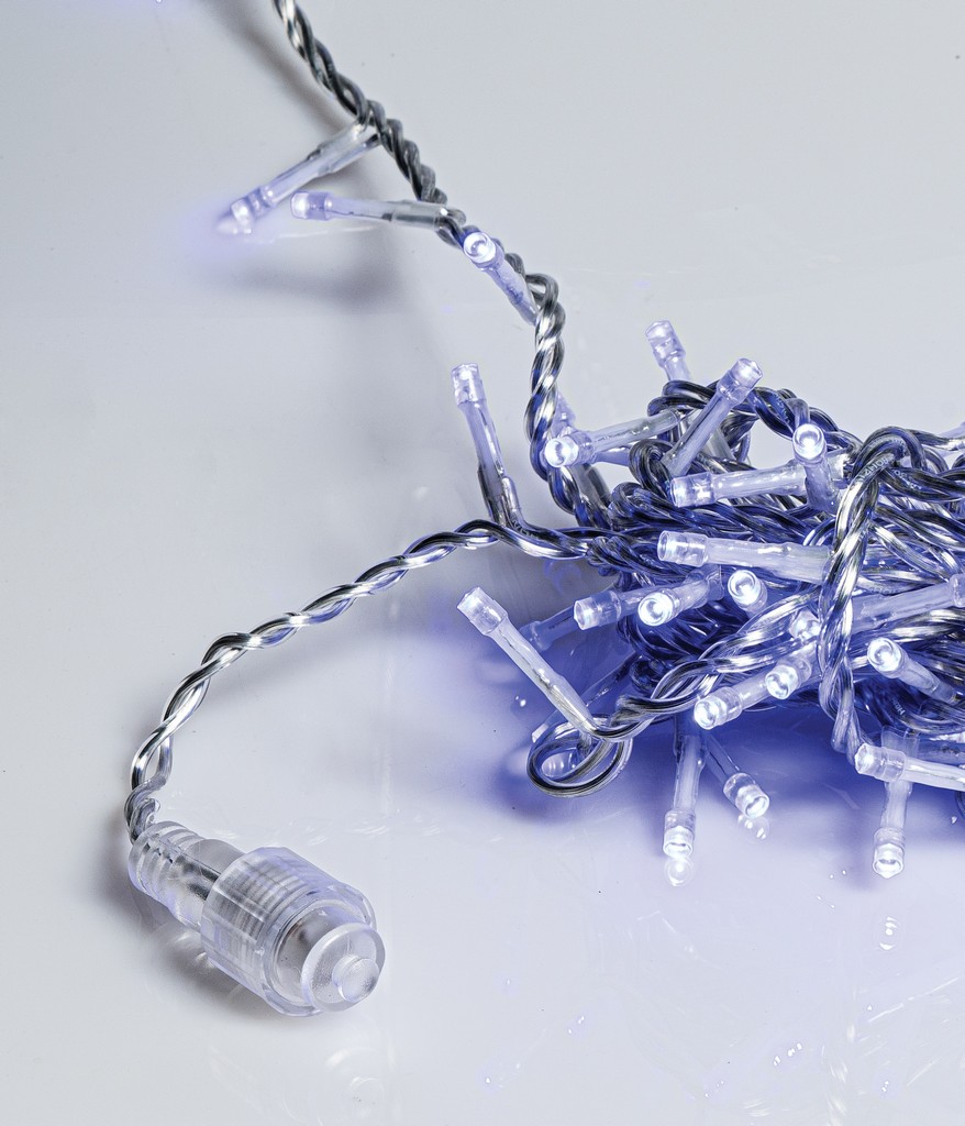 Τα χριστουγεννιατικα λαμπακια Led εκτος απο την πολυ μικρη καταναλωση ρευματος ειναι και ασφαλες καθως το λαμπακι δεν θερμενεται καθολουμε αποτελεσμα να μην καιγεται. Χαρακτηριστικα: Μηκος: 5 Μετρα Λαμπακια: 100 Led Χρωμα Καλωδιου: Διαφανο Χρωμα Φωτισμου: Λευκο Επεκτεινομενο: Οχι Προγραμμα: Ναι Λαμπακι Παχους: 5mm IP: 20Kelvin: 6.000 – 10.000 Χρησιμες συμβουλες καλης λειτουργειας: – Ποτε μην κοβετε το καλωδιο για να κανετε ενωσεις – Ποτε μην τραβατε τα λαμπακια η να τα στριβετε διοτι αυτο που λεμε οτι τα λαμπακια καηκανε δεν ισχυει. Αυτο που συμβαινει ειναι οτι τραβηξαμε η στριψαμε ενα λαμπακι και απλα εφυγε απο την θεση του με αποτελεσμα να σταματησει να δινει ρευμα και στα υπολοιπα. Ποτε δεν μπορουν να καουνε τα λαμπακια ολα μαζι εκτος αν υπαρξει καποιο δυνατο βραχυκυκλωμα.