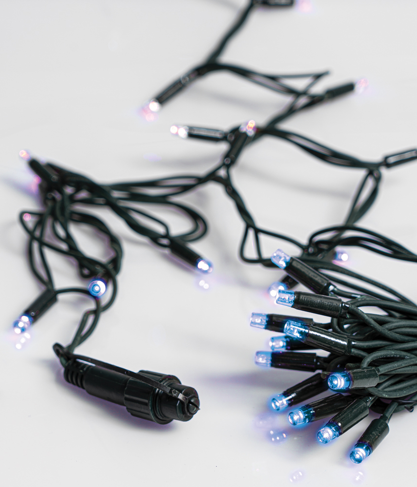 Τα χριστουγεννιατικα λαμπακια Led εκτος απο την πολυ μικρη καταναλωση ρευματος ειναι και ασφαλες καθως το λαμπακι δεν θερμενεται καθολουμε αποτελεσμα να μην καιγεται. Χαρακτηριστικα: Μηκος: 10 Μετρα Λαμπακια: 100 Led Rubber Χρωμα Καλωδιου: Πράσινο Χρωμα Φωτισμου: Μπλέ Επεκτεινομενο: Ναι Προγραμμα: Οχι IP: 44 Λαμπακι Παχους: 8mm Χρησιμες συμβουλες καλης λειτουργειας: – Ποτε μην κοβετε το καλωδιο για να κανετε ενωσεις – Ποτε μην τραβατε τα λαμπακια η να τα στριβετε διοτι αυτο που λεμε οτι τα λαμπακια καηκανε δεν ισχυει. Αυτο που συμβαινει ειναι οτι τραβηξαμε η στριψαμε ενα λαμπακι και απλα εφυγε απο την θεση του με αποτελεσμα να σταματησει να δινει ρευμα και στα υπολοιπα. Ποτε δεν μπορουν να καουνε τα λαμπακια ολα μαζι εκτος αν υπαρξει καποιο δυνατο βραχυκυκλωμα.