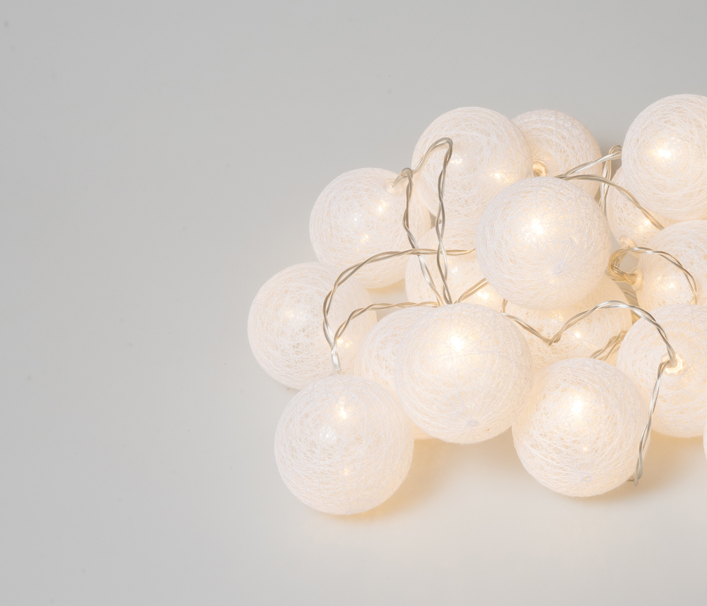 20Led Φωτάκια Σταθερά Με Μπάλες Cotton 6cm Με Μετασχηματιστή Ip44 Και Χρονοδιακόπτη 6 Ωρών Με Θερμό Φωτισμό 3 Μέτρα