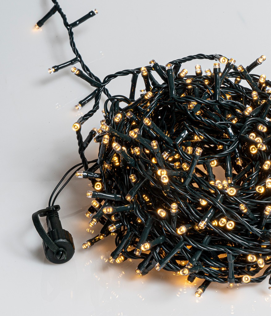 500Led Φωτάκια Με Επέκταση Και Μετασχηματιστή ,Πράσινο Καλώδιο/Θερμό Λαμπάκι , (3cm Απόσταση) 15 Μέτρα , (Kelvin 2.500 – 2.800) , Με Καρούλι Αποθήκευσης
