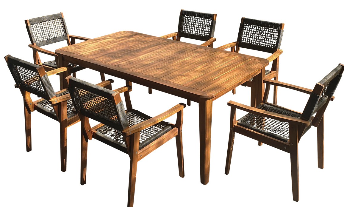 AMORGOS Τραπεζαρία Σέτ 7 Τεμαχίων Με Ξύλινο Σκελετό Acacia Wood Και Σχοινί (PR1624) , 180 x 100 x 75(h)cm