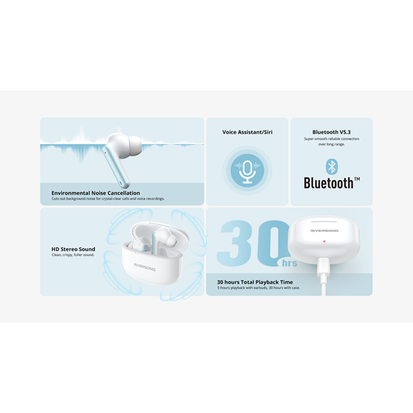 Διασκεδάστε με 30 ώρες συνολικού χρόνου αναπαραγωγής με τη θήκη, με μόλις 1,5 ώρα φόρτισης.