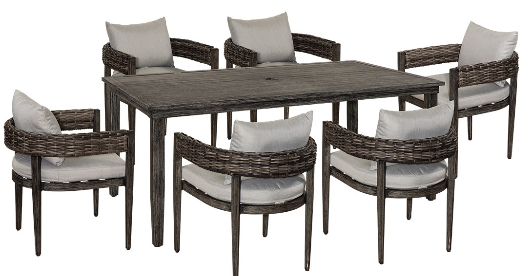 Περιλαμβάνονται: 1 Τραπέζι Παραλ/μο Με Αλουμίνιο Σκελετό Διάσταση : 183 x 1015 x 76(h)cm 6 Πολυθρόνες Με Αλουμίνιο Σκελετό Και Rattan Με Αδιαβροχοποιημένα Μαξιλάρια Διάσταση : 60 x 59 x 66(h)cm * Σκελετός Αλουμινίου * Στην Τιμή Περιλαμβάνονται Και Τα Μαξιλάρια