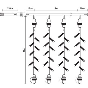 Τα χριστουγεννιατικα λαμπακια Led εκτος απο την πολυ μικρη καταναλωση ρευματος ειναι και ασφαλες καθως το λαμπακι δεν θερμενεται καθολουμε αποτελεσμα να μην καιγεται. Χαρακτηριστικα: Μηκος : 200cm Υψος : 10 Mετρα Λαμπακια : 1000 (10 Σειρες Χ 100 LED) Χρωμα Καλωδιου : Λευκό Χρωμα Φωτισμου : Θερμο Επεκταση : Ναι Προγραμμα : Οχι IP : 44 Λαμπακι Παχους : 8mm (Rubber) Kelvin: 2.500 – 3.000 Χρησιμες συμβουλες καλης λειτουργειας: – Ποτε μην κοβετε το καλωδιο για να κανετε ενωσεις – Ποτε μην τραβατε τα λαμπακια η να τα στριβετε διοτι αυτο που λεμε οτι τα λαμπακια καηκανε δεν ισχυει. Αυτο που συμβαινει ειναι οτι τραβηξαμε η στριψαμε ενα λαμπακι και απλα εφυγε απο την θεση του με αποτελεσμα να σταματησει να δινει ρευμα και στα υπολοιπα. Ποτε δεν μπορουν να καουνε τα λαμπακια ολα μαζι εκτος αν υπαρξει καποιο δυνατο βραχυκυκλωμα. .