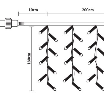 Χαρακτηριστικα: Μηκος: 200cm Υψος: 180cm Λαμπακια: 360 Χρωμα Καλωδιου: Πρασινο Χρωμα Φωτισμου: Θερμο Επεκταση: Ναι Προγραμμα: Οχι IP: 20 Λαμπακι Παχους: 4mm Χρησιμες συμβουλες καλης λειτουργειας: – Ποτε μην κοβετε το καλωδιο για να κανετε ενωσεις – Ποτε μην τραβατε τα λαμπακια η να τα στριβετε διοτι αυτο που λεμε οτι τα λαμπακια καηκανε δεν ισχυει. Αυτο που συμβαινει ειναι οτι τραβηξαμε η στριψαμε ενα λαμπακι και απλα εφυγε απο την θεση του με αποτελεσμα να σταματησει να δινει ρευμα και στα υπολοιπα. Ποτε δεν μπορουν να καουνε τα λαμπακια ολα μαζι εκτος αν υπαρξει καποιο δυνατο βραχυκυκλωμα.